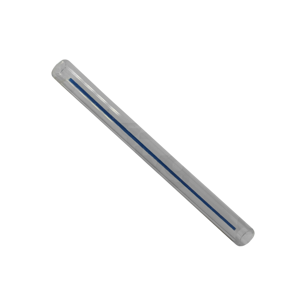 شیشهی استوانهای مخصوص نشان دادن سطح آب در بویلر دستگاههای اسپرسوساز صنعتی. این مدل دارای قطر خارجی ۱۱ میلیمتر و طول ۱۲۵ میلیمتر است و روی آن یک خط آبی روی زمینه سفید برای خوانایی بهتر سطح آب وجود دارد.